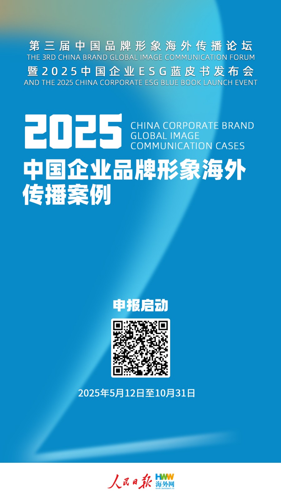 为推动中国品牌海外传播,促进中国企业高质量出海,人民日报海外网拟于2025年11月举办第三届中国品牌形象海外传播论坛。5月12日,人民日报海外网正式启动2025中国企业品牌形象海外传播案例申报及评估工作,申报截止日期为10月31日,最终榜单将于第三届中国品牌形象海外传播论坛上隆重揭晓,并在社交媒体平台上同步发布,敬请关注!